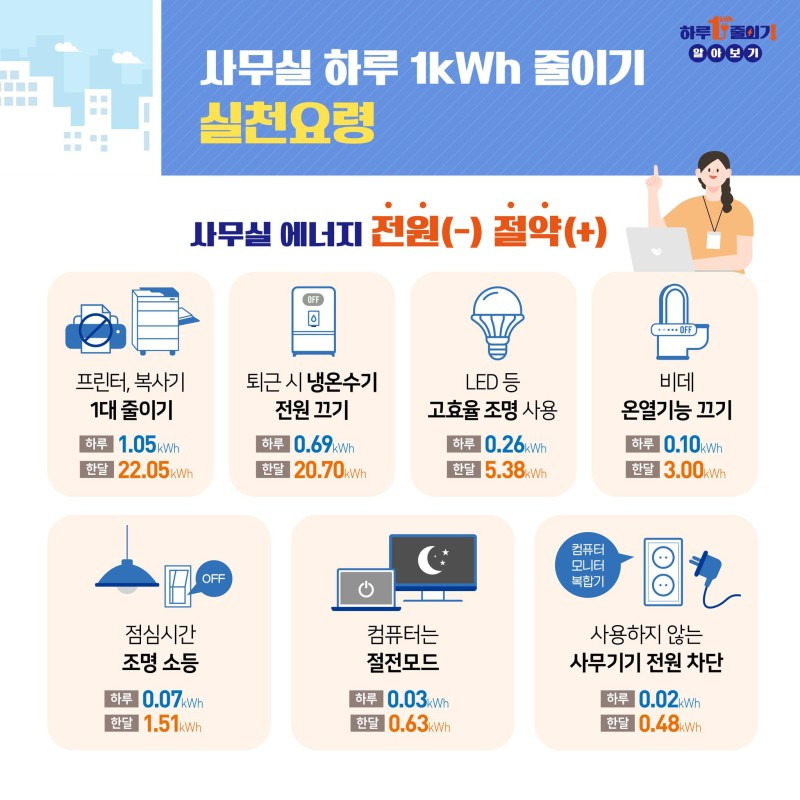- 대기전력 차단: 사용하지 않는 전자기기의 플러그를 뽑으면 월 전기요금의 15% 절감 효과.